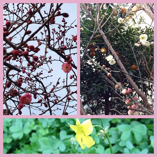 紅梅も白梅も、道端の小さな花も、もう春を感じとって咲き始めてる。